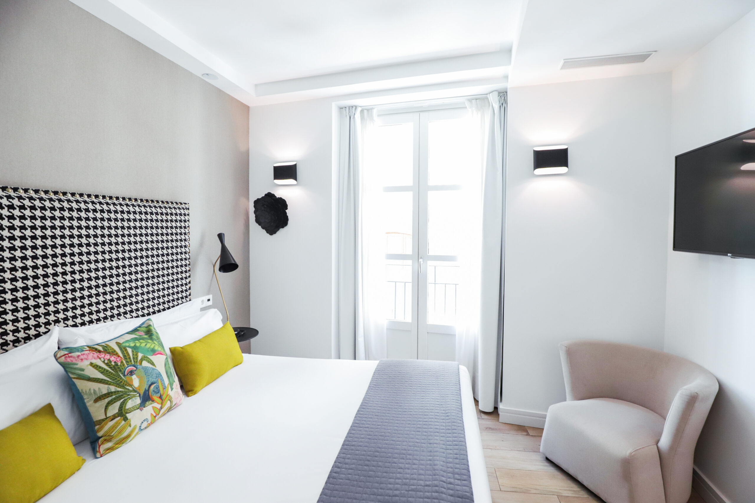 Con una superficie de entre 20 y 24 m², esta habitación doble exterior destaca por su luminosidad, diseño contemporáneo y una cuidada decoración que combina estilo urbano con calidez.