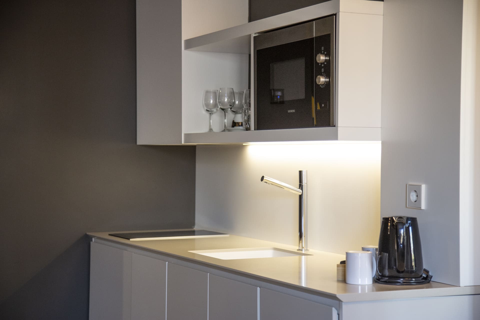 La estancia incluye una cocina completamente equipada, diseñada para que pueda organizar sus comidas con total independencia, con todos los utensilios y electrodomésticos necesarios.